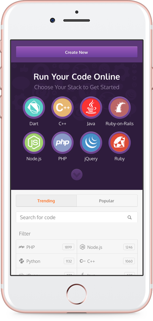 We put the languages we supported in the hero. Users could tap on the one they were interested in and start writing code right away.